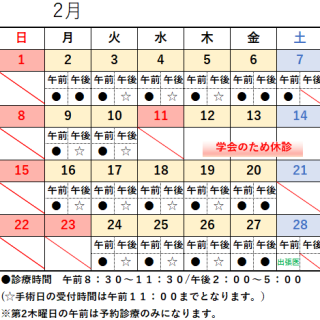 本年もよろしくお願いいたします。 2月の診療予定についてお知らせ致します・・・